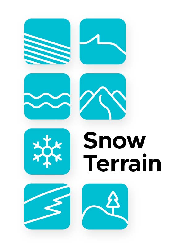 Snowfeet* are best on groomed snow. You can use Snowfeet* on powder that is not thicker than +/- 10 cm (4 in). They are great on ski slopes, snow parks, sliding hills, or hiking trails, just not in deep powder. By the way, most skis are not suited for deep powder snow either. Additionally, try to avoid extremely steep slopes and ungroomed terrain full of bumps and holes.