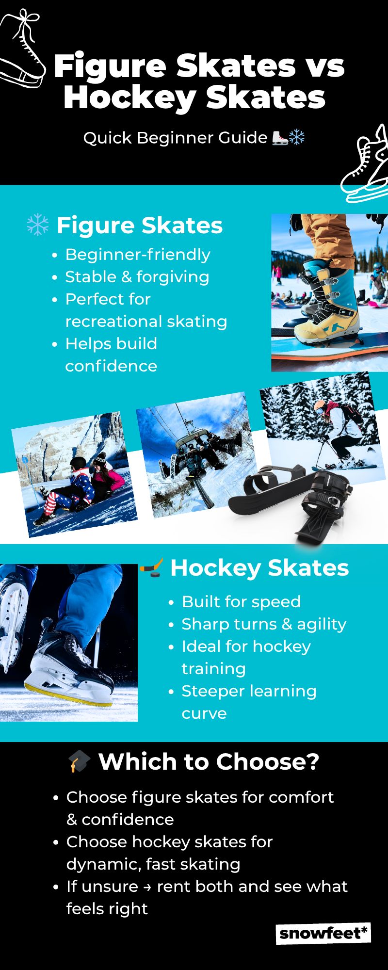 - 🎓 Which to choose: figure skates for comfort & confidence; hockey skates for dynamic skating.