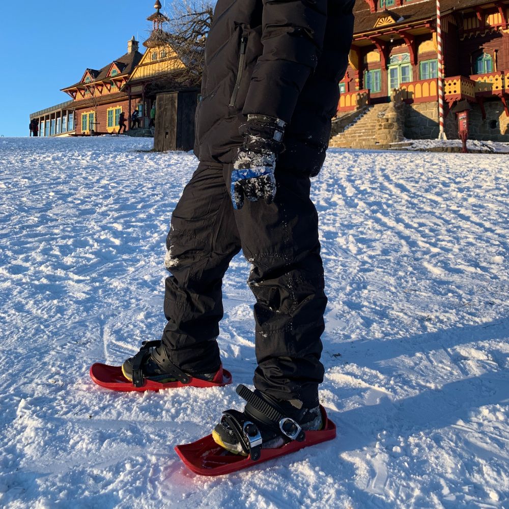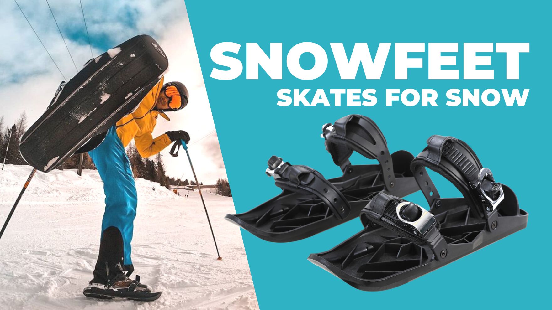 Snowfeet are unique mini ski skates you can attach to your winter or snowboard boots. Use them for downhill on the slopes and hiking trails, in snow parks, or just have fun on your local sledding hill or in your backyard.