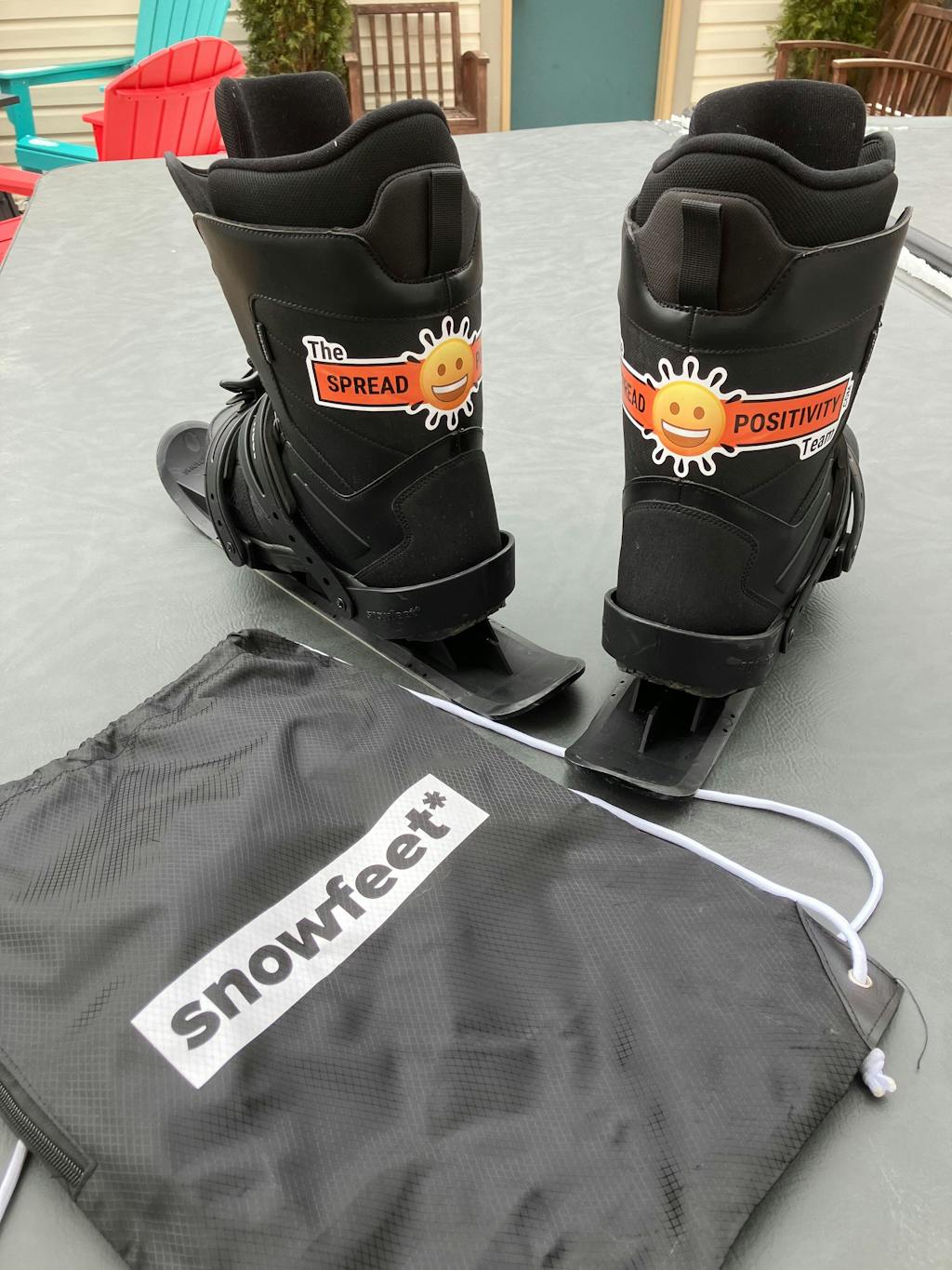 Hi Guys! Quick update on a previous review I gave saying how much fun the Snowfeet Ski Skates are! Had them on the slopes again yesterday and had 50+ people asking me about them. Had more pictures taken with them and directed them to your website! Our Spread Positivity Team stickers also helped in attracting the attention. So much fun explaining them to everyone about the Ski Skates and really looking forward to getting out on them for the rest of the season. 😀👍