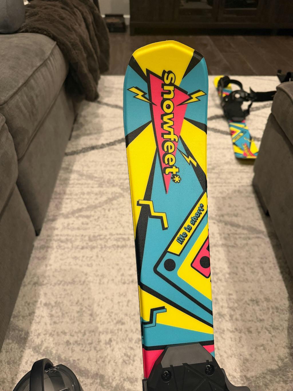 Short skis can be also called "skiblades," "snowblades," "mini skis," "skiboards," or "bigfoot." These shorter options compared to regular skis are easier to control, which many people like because it allows for more fun and flexible skiing on different types of surfaces