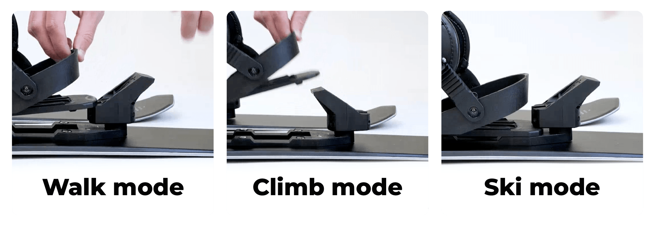 Our innovative, proprietary binding system powers Walkski. Easily switch between three modes for ultimate backcountry adaptability: